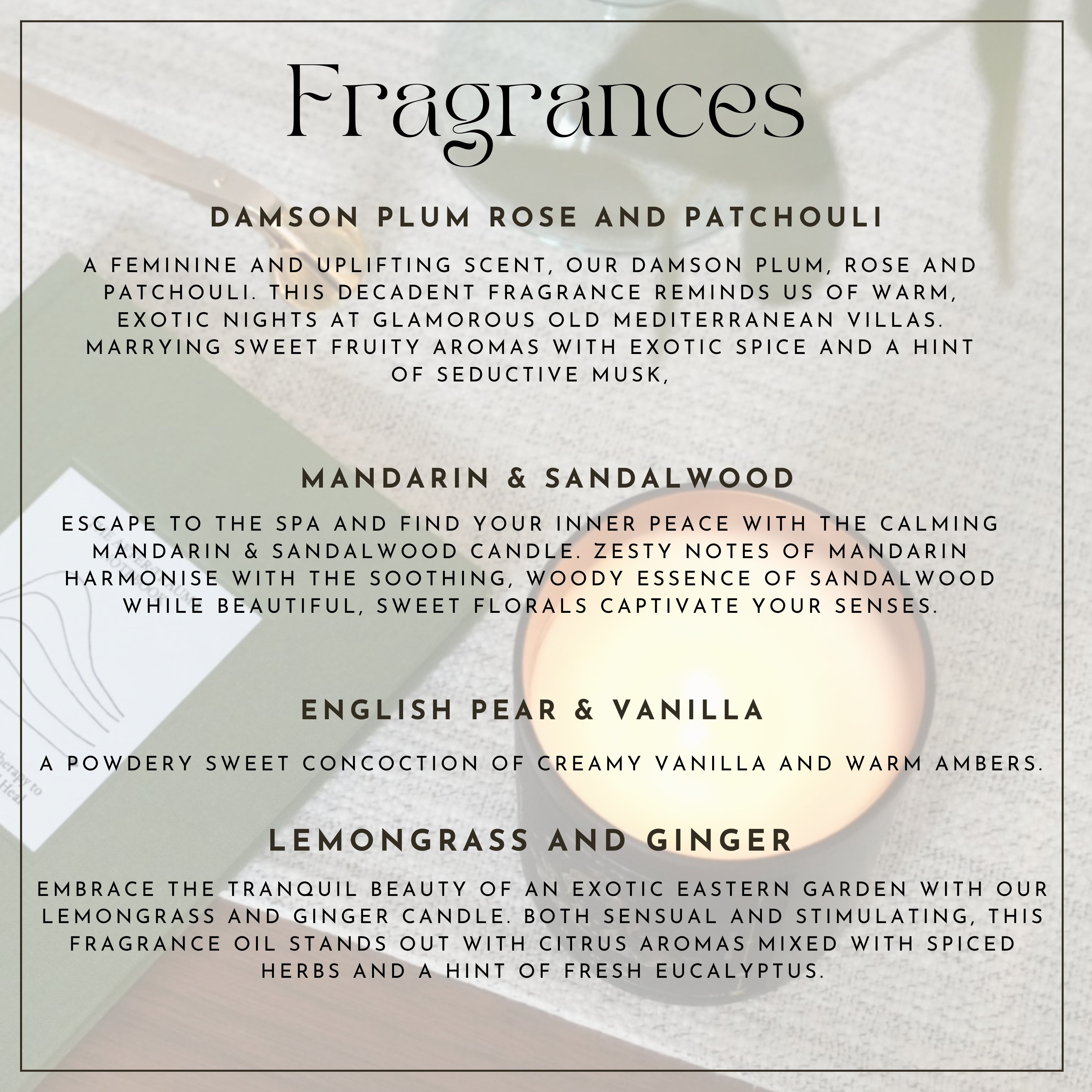 Each candle is presented with a beautiful gold metal lid to ensure the fragrance is retained and support candle cleanliness.