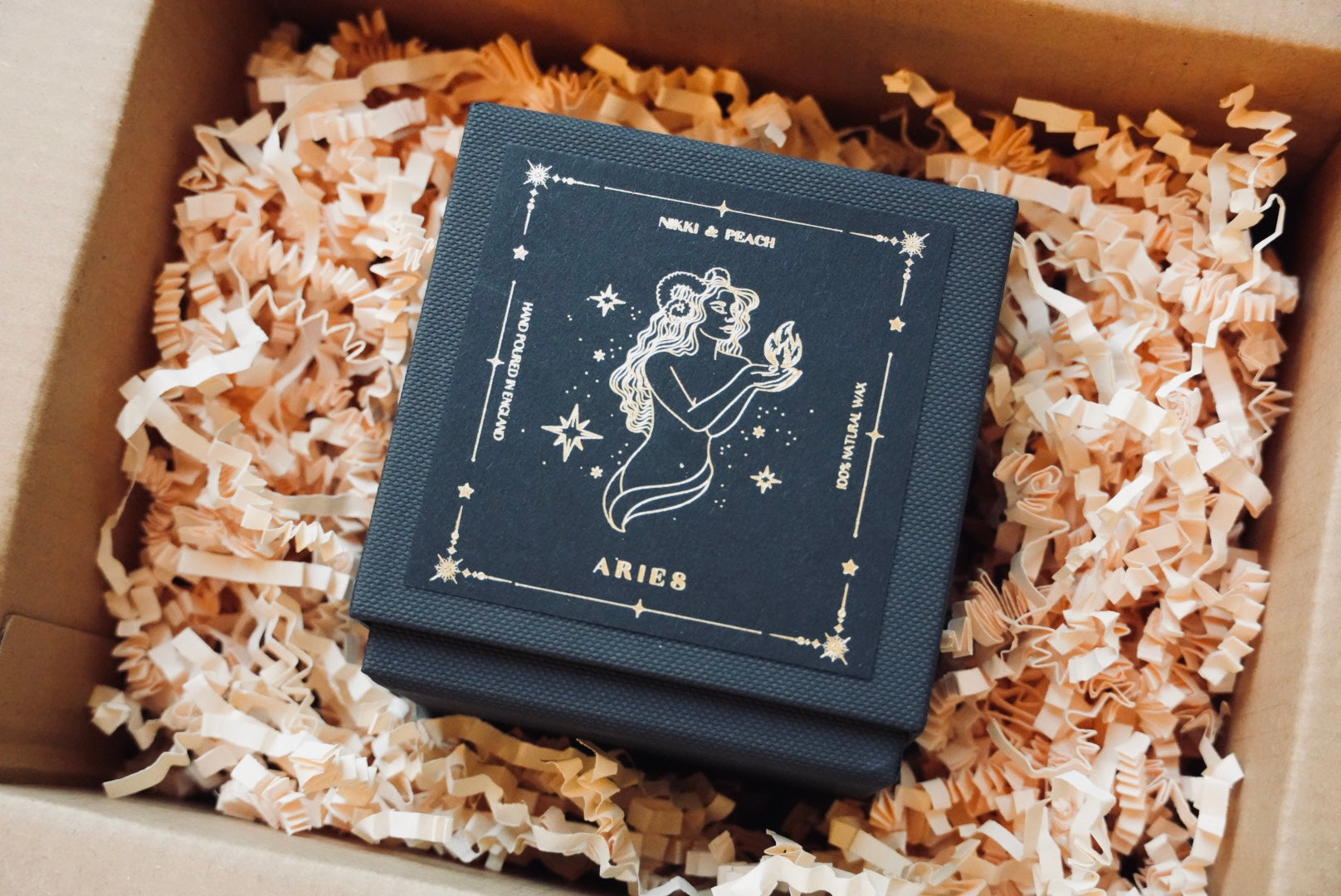 Our Aries candle radiates the strong, dazzling soul of this fiery astrological sign evoking memories of the spirited, tender, and insightful facets of this cherished star sign.