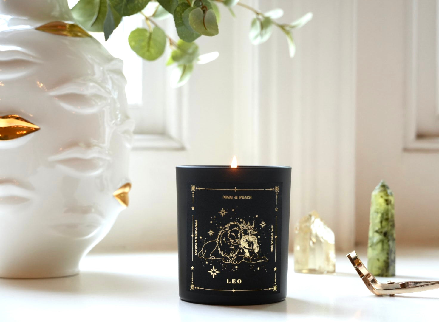 Our Leo candle offers a divine light to your home, as an extravagant and celestial ode to the fiery zodiac sign. Its luxurious glow envelops you in the majestic creativity, passion, and loyalty of the Leo spirit. A stunning reminder of the magical traits of this beloved sign.